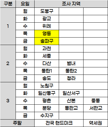 1) 용인시 수지구 (풍덕천동/동천동/죽전동/성복동/상현동/신봉동)