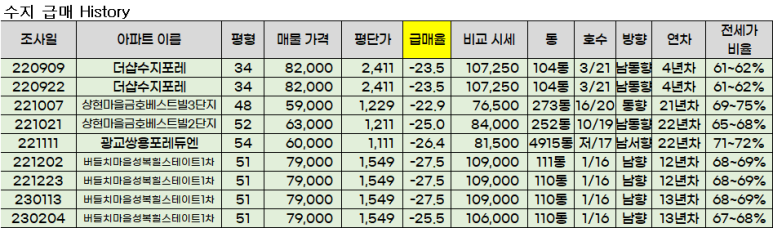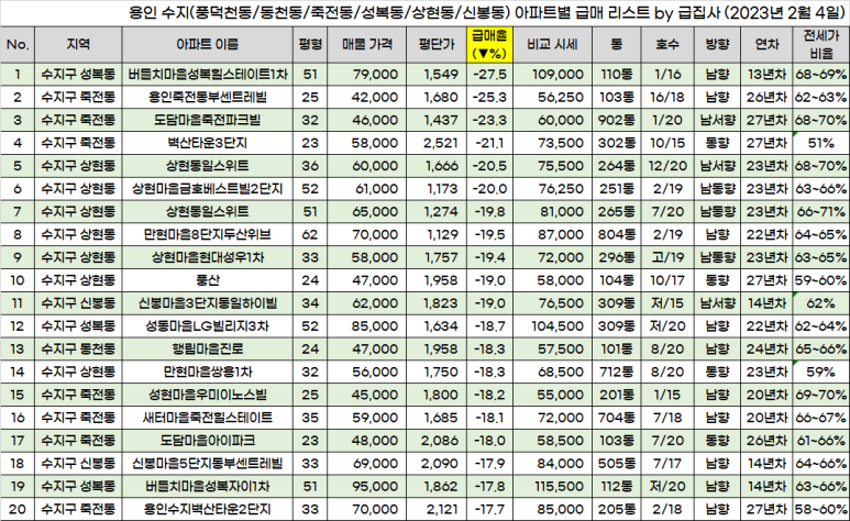 2023년 2월 3일 기준 급매 아파트 리스트입니다.