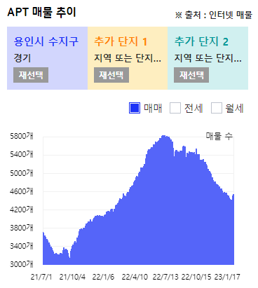 매매 매물은 작년 7월초 이후 감소하던 매물은 최근 증가했습니다.