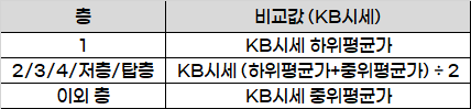 전세/월세 낀 물건은 최대한 제외하였으며, KB시세와 네이버 부동산 매매 물건 가격을 비교하여 단지별 제일 저렴한 매물을 선정하여 리스트로 작성하였습니다.